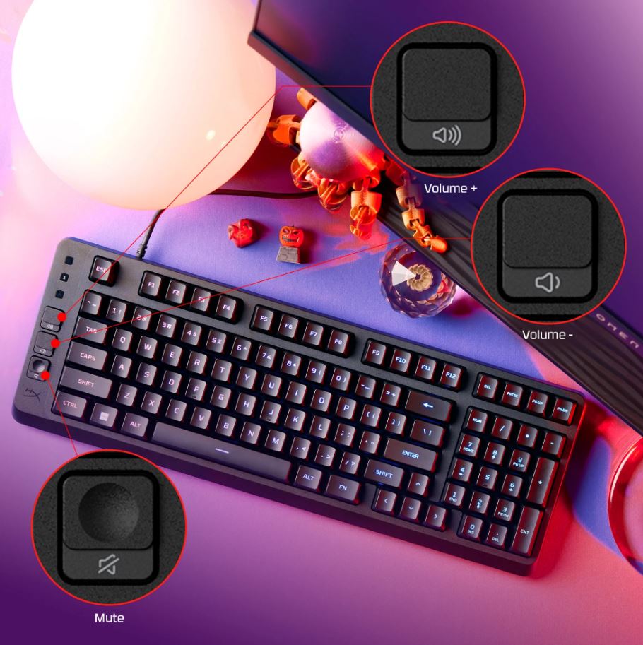 HyperX Eve 1800 nabízí plnohodnotnou klávesnici v kompaktním rozložení, což vám poskytuje více místa pro sluchátka, myš a další příslušenství.