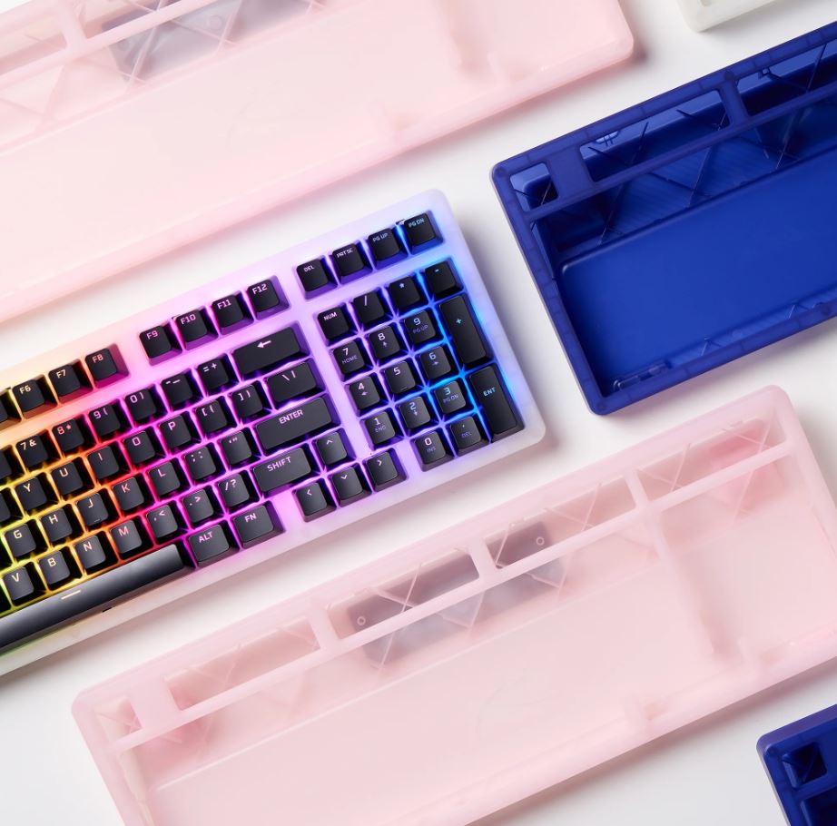 Vstupte do světa přizpůsobitelných klávesnic s rámečkem Origins 2! Díky jednoduché dvoudílné konstrukci nabízí rámeček Origins 2 1800 snadný způsob, jak vaší sestavě dodat trochu barvy. Tento rámeček, vyrobený z matného průsvitného materiálu, vytváří v kombinaci s RGB LED diodami klávesnice jemný efekt rozptýleného osvětlení. Kryt využívá gumové podložky, které zajišťují stabilní platformu pro psaní a hraní her, která neklouže po stole. Vysoký profil poskytuje pohodlný úhel pro psaní a dvě sklopné nožičky tento úhel ještě zvýší. Kryt se snadno vyměňuje, k jeho otevření a zavření stačí šroubovák s křížovou hlavou. Po otevření můžete jednoduše vyjmout celou desku s plošnými spoji a silikonovou závaží a umístit je do nového krytu. Můžete si dokonce navrhnout a vytvořit vlastní kryt klávesnice pomocí oficiálních open-source souborů pro 3D tisk, které jsou kompatibilní s většinou standardních 3D tiskáren.