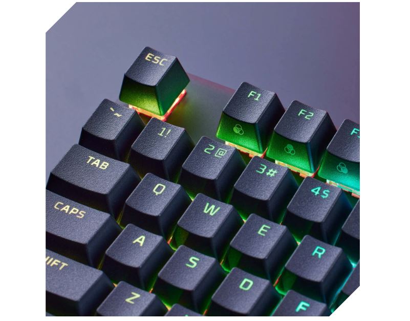 Tyto klávesy z PBT jsou příjemné na dotek a ještě odolnější. Boční potisk na klávesách pomáhá zajistit, aby důležité funkce klávesnice byly snadno viditelné a časem se méně opotřebovávaly.
