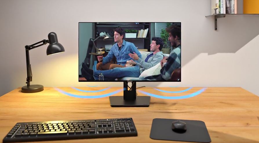 Užijte si čistý a příjemný zvuk pro hovory, videa a hudbu a zároveň si ušetřete další reproduktory na stole díky integrovanému zvuku.