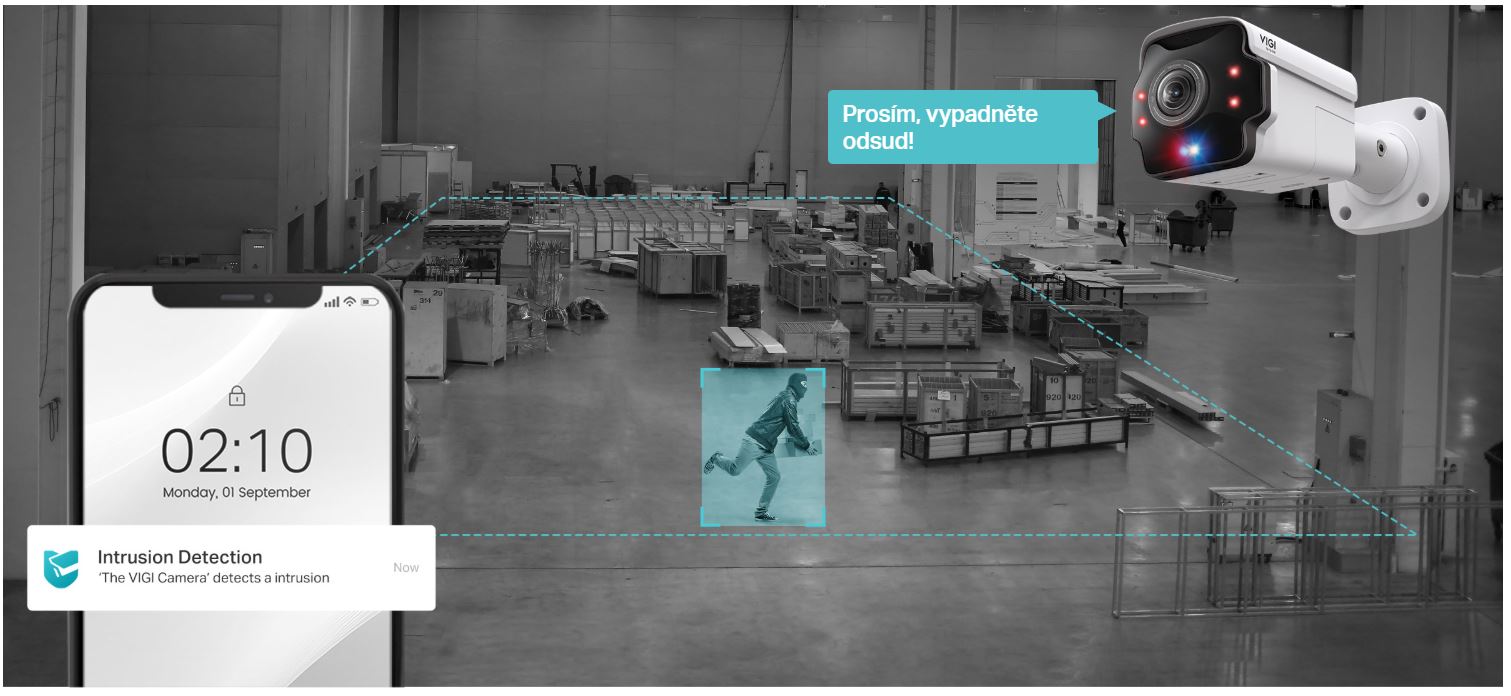 - Chytrá detekce: vniknutí, překročení čáry, opuštěný/odebraný objekt, loitering, abnormální zvuk, změna scény