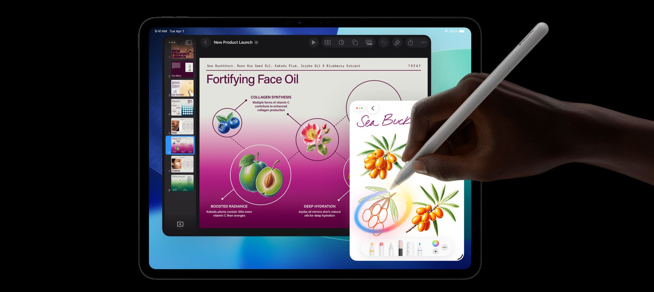 Apple Pencil představuje ideál toho, jak intuitivně, precizně a kouzelně snadno by se mělo dát kreslit, malovat, psát od ruky a dělat poznámky. Je přesný do posledního pixelu, citlivý na náklon, má zanedbatelnou latenci a podporuje ignorování opřené dlaně. A Apple Pencil Pro přináší ještě víc možností, jak můžeš svým nápadům dávat konkrétní obrysy.