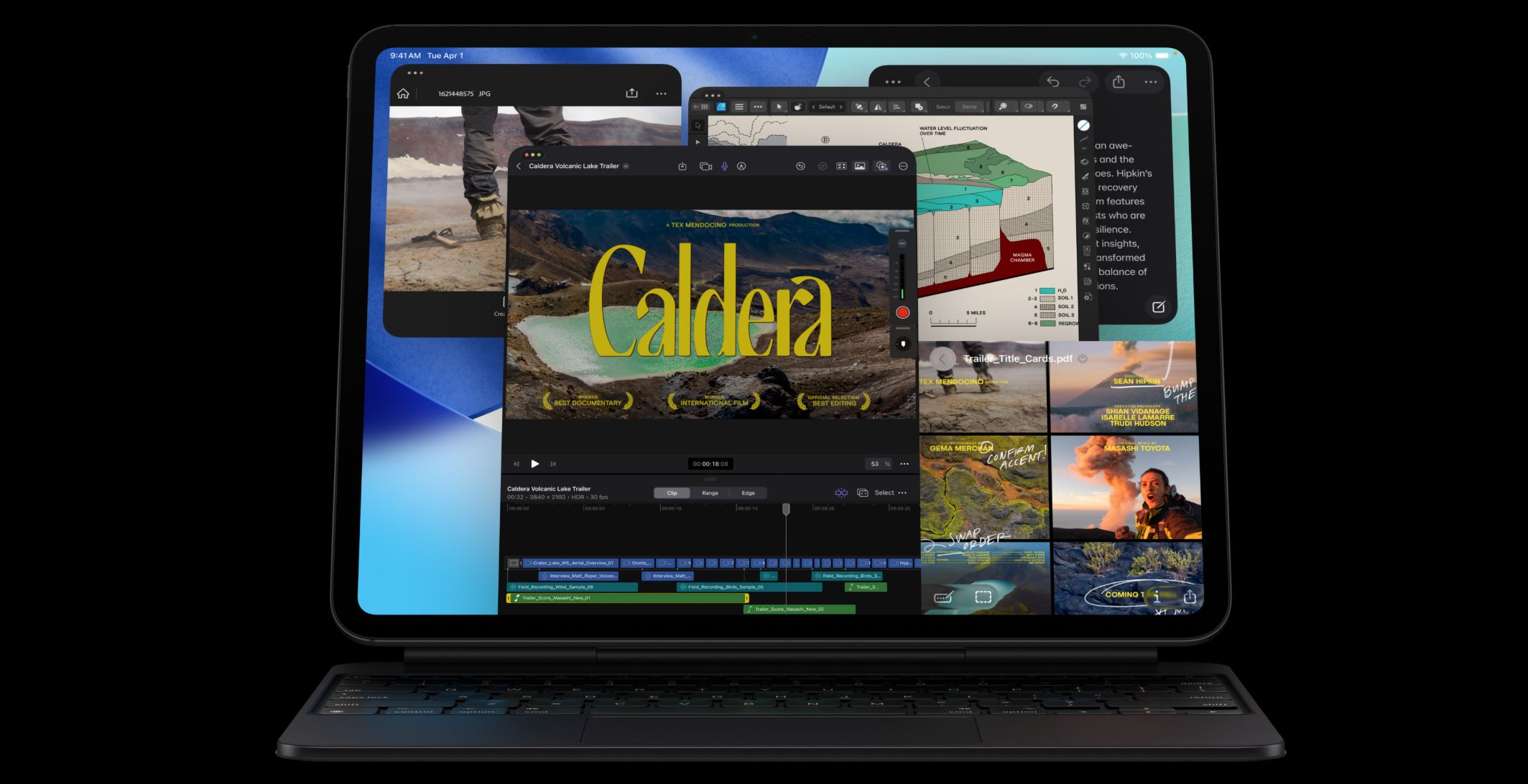 Natáčej, střihej a sdílej. Všechno na jediném zařízení s profesionální fotosoustavou, která zahrnuje i LiDAR skener, s mikrofony studiové kvality a čtyřmi reproduktory. Snadno zaznamenáš 4K ProRes video, nahraješ podcast a pomocí funkce volby vstupu vybereš pro každou aplikaci ten správný mikrofon.
