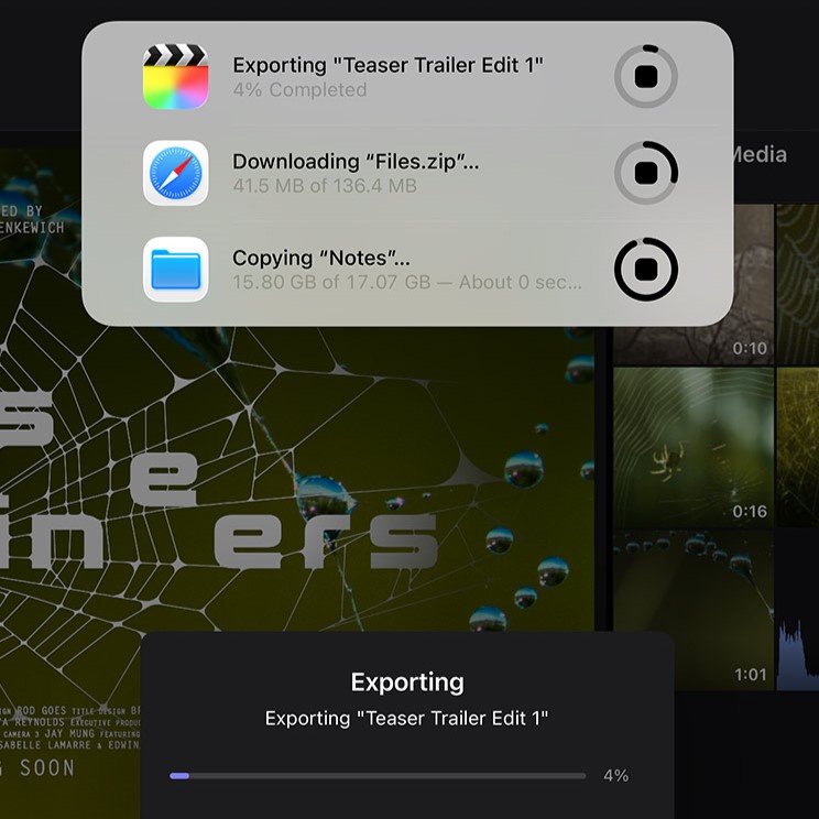 Náročné procesy můžou běžet jako úlohy na pozadí. A všechno, co máš právě spuštěné, se dá snadno spravovat v zobrazení živých aktivit.