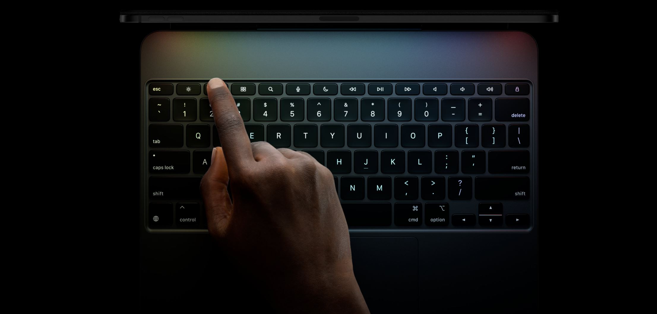 Na Magic Keyboardu je radost psát i používat trackpad. Má elegantní design s hliníkovou dlaňovou opěrkou a je krásně přenosný. Součástí klávesnice je i řádek funkčních kláves a velký skleněný trackpad s haptickou odezvou na přesnou práci a Multi-Touch gesta.
