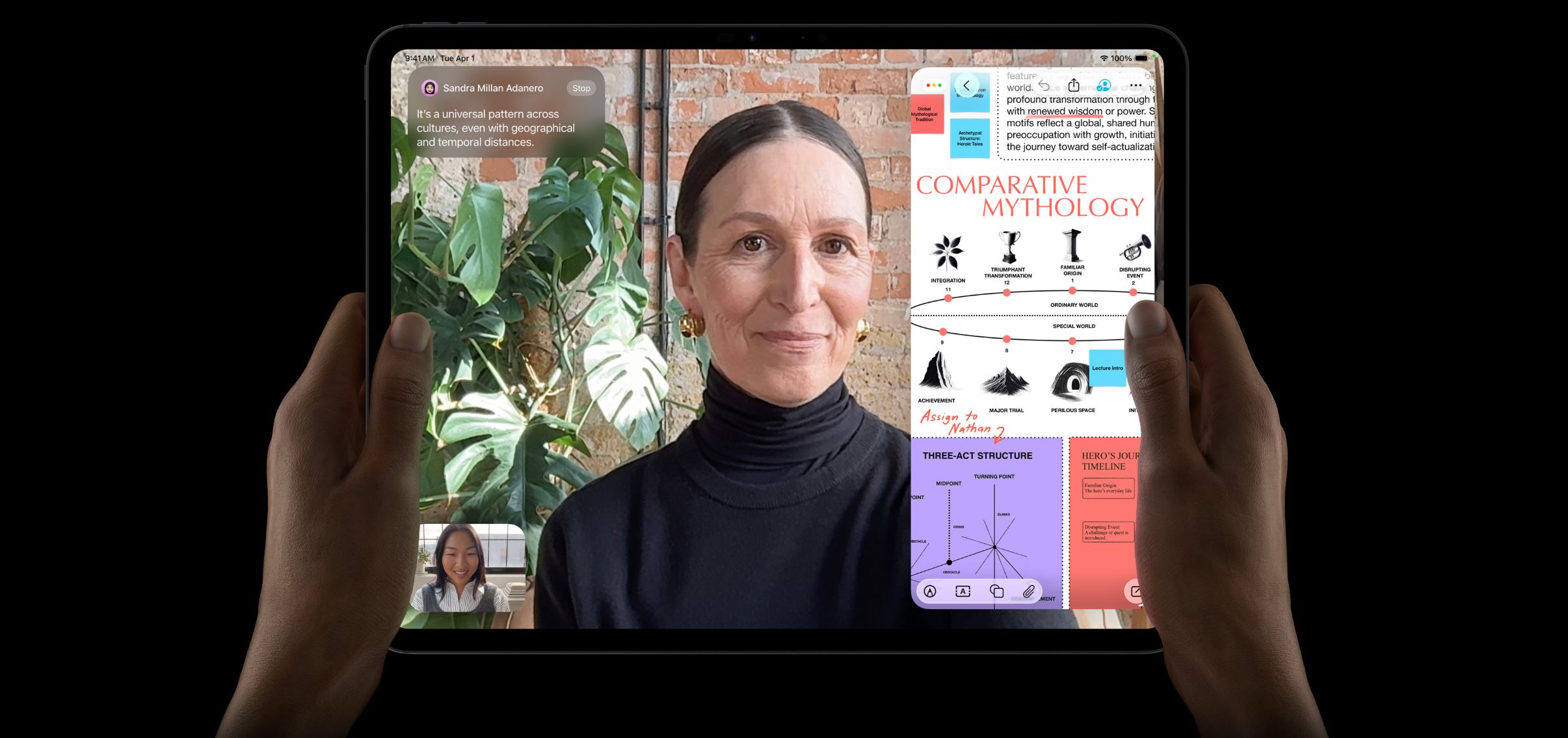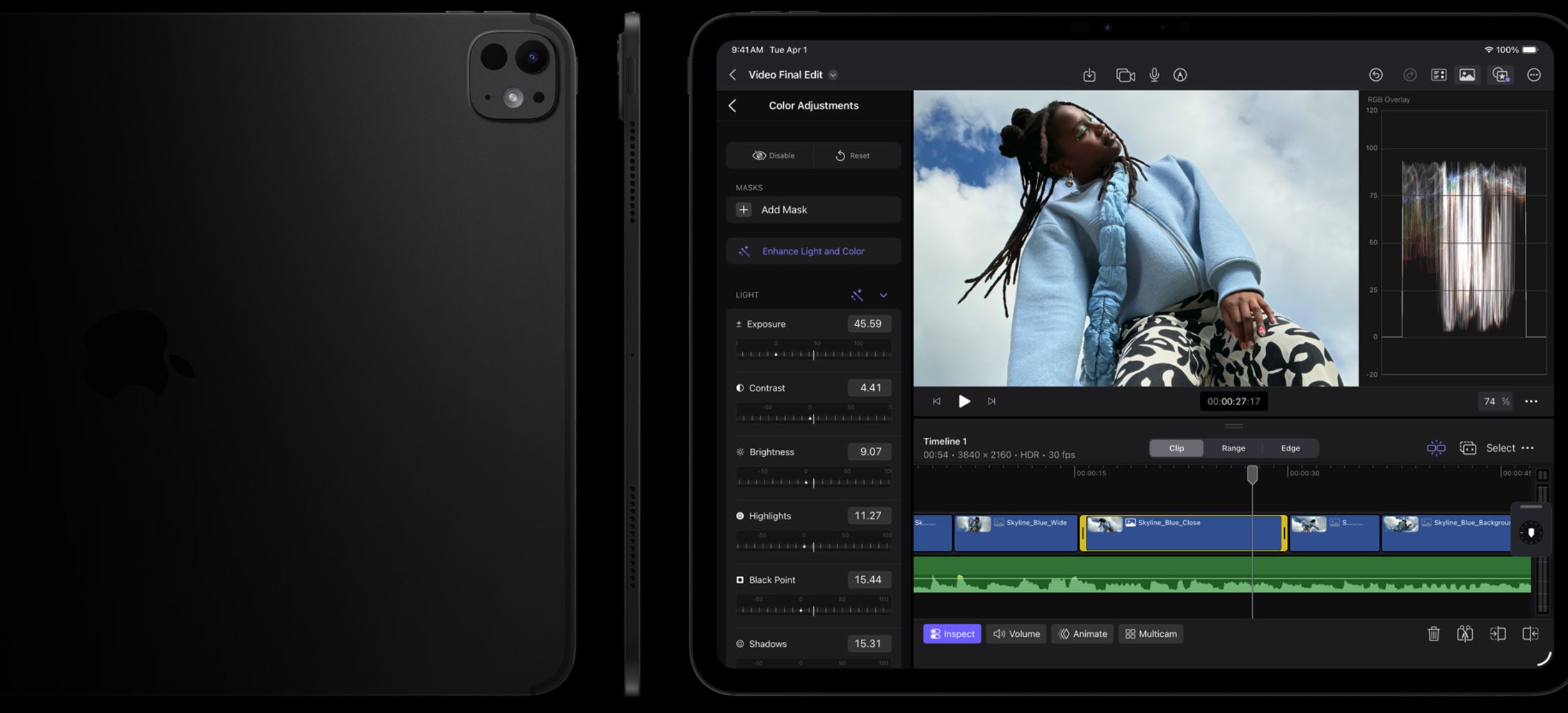 Natáčej, střihej a sdílej. Všechno na jediném zařízení s profesionální fotosoustavou, která zahrnuje i LiDAR skener, s mikrofony studiové kvality a čtyřmi reproduktory. Snadno zaznamenáš 4K ProRes video, nahraješ podcast a pomocí funkce volby vstupu vybereš pro každou aplikaci ten správný mikrofon.