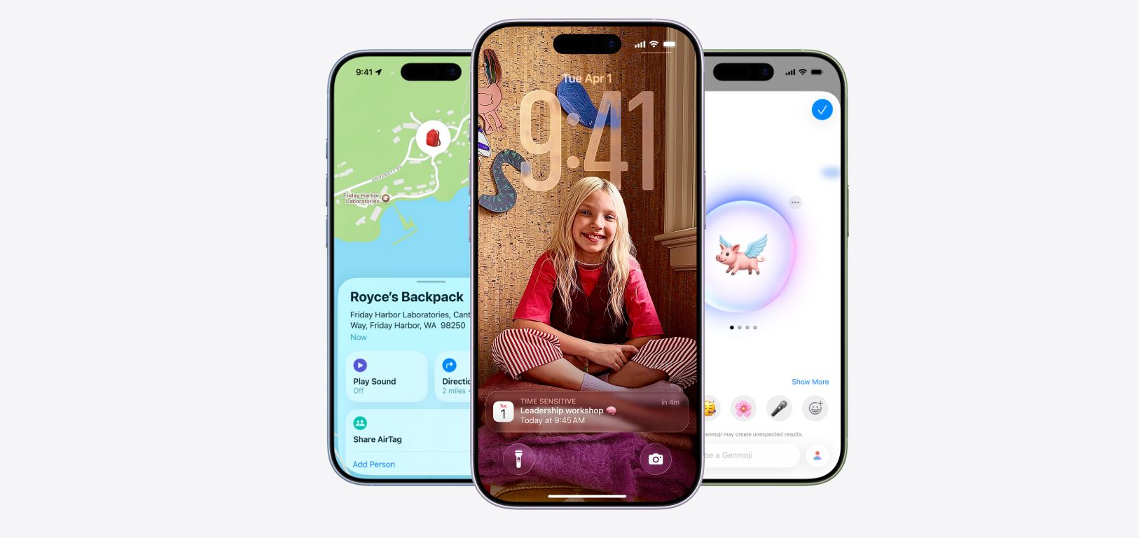 Nejnovější modely iPhonu jsou nabité inovativními funkcemi. Mají Apple Intelligence,17 systém osobní inteligence, který ti pomůže psát, vyjadřovat se a být produktivní bez větší námahy. A na rychlé, bezpečné připojení je tu Wi-Fi 7, Bluetooth 6, podpora 5G a eSIM.