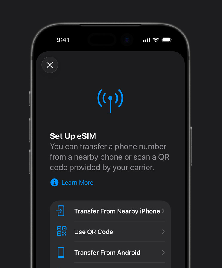 Integrovaná eSIM poskytuje bezproblémové připojení, flexibilitu, pohodlí a lepší zabezpečení. Na cestování úplně ideální.