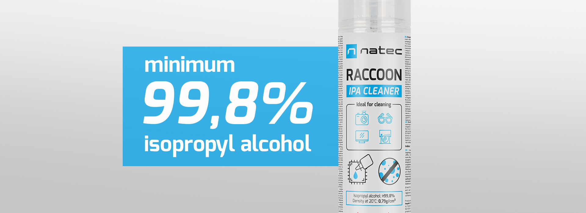 Vysoká účinnost, rychlé odpařování a žádné šmouhy - Raccoon IPA je účinná a chemicky neutrální, takže péče o elektroniku a odstraňování nečistot je snadnější než kdykoli předtím. To je dáno vysokým obsahem hlavní složky (?99,8 %) a dlouhou dobou skladovatelnosti. Přesvědčte se, jak snadné může být odstranění nečistot pomocí Raccoon IPA.