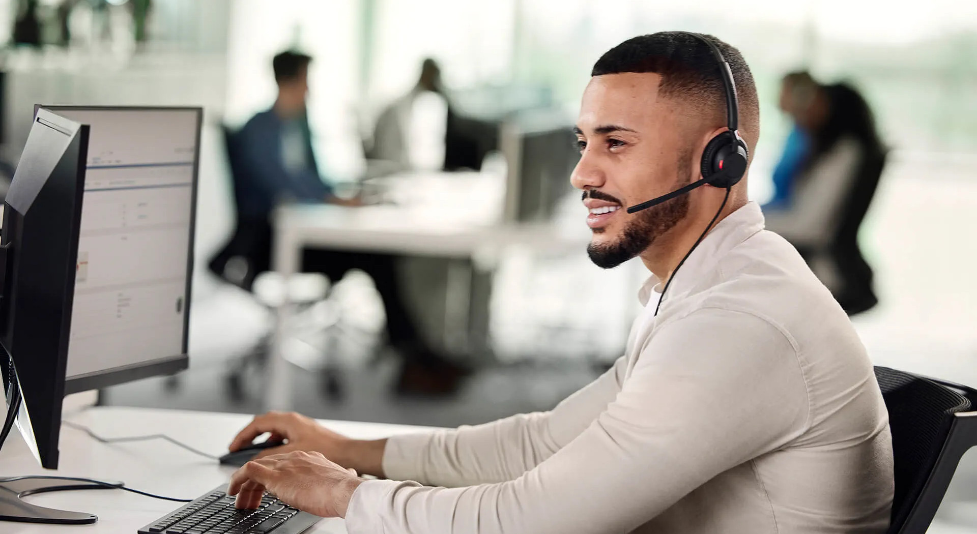 Kvalita zvuku může hovor výrazně ovlivnit. Engage 40 jsme vybavili ne jedním, ale dvěma mikrofony: Jeden vám pomůže jednou provždy překonat hluk na pozadí a druhý slouží k tomu, aby byl váš hlas ostrý jako břitva, což umožňuje přesnější převod řeči na text. V kombinaci s intuitivním softwarem Engage+ vytváří naše inovativní mikrofonní technologie tak harmonické podmínky, že vám může pomoci zkrátit průměrnou dobu zpracování hovorů.