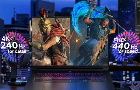 Vaše osobní herní studio - užijte si obrovskou plochu obrazovky pro vývoj her, video FX, hraní. Bez námahy přejděte ze 4K při 240 Hz na Full HD při 440 Hz pro extrémní rychlost.