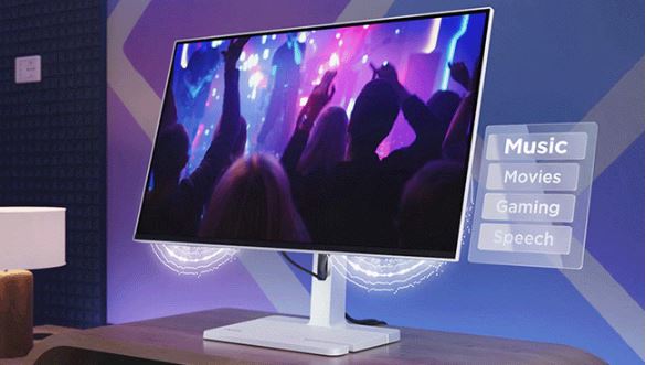 Vychutnejte si svou hudbu a filmy s křišťálově čistým zvukem díky duálním 3W reproduktorům monitoru.
