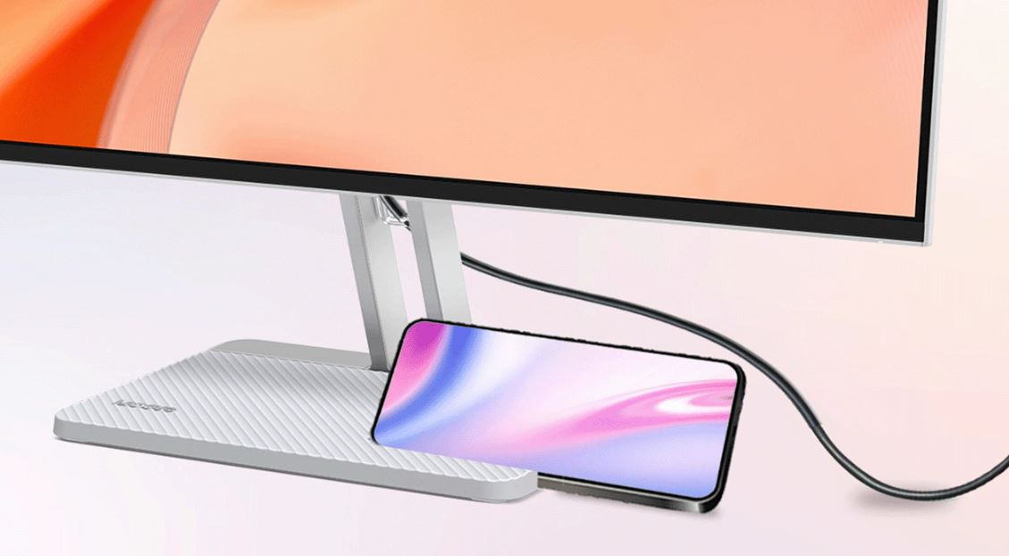 Monitor je navržen pro snadnou montáž, nabízí možnost naklápění pro přizpůsobení úhlu sledování a obsahuje praktické doplňky jako integrovaný stojánek na telefon a systém pro správu kabelů, které pomáhají udržet pracovní stůl čistý a bez nepořádku.