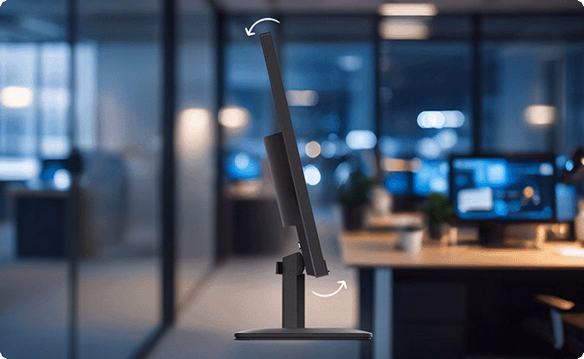 Udržujte si dokonalé držení těla a čistý stůl díky snadno sestavitelnému naklápěcímu stojanu (-5°/+22°) a držáku VESA.