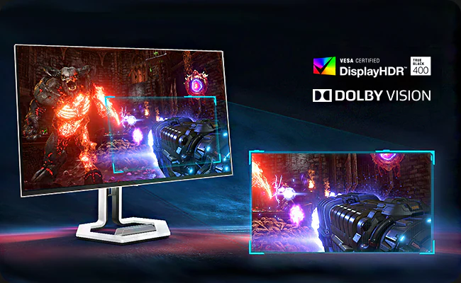 Zažijte hlubší kontrast, bohatší detaily a plynulejší přechody díky technologiím Dolby Vision™ a VESA Certified DisplayHDR™ True Black 400, které přinášejí ohromující vizuální zážitky pro skutečně pohlcující hraní nové generace.