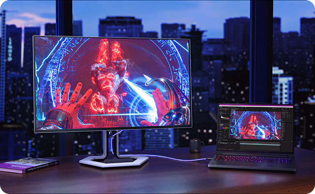 Technologie PureSight OLED poskytuje ohromující kvalitu obrazu a dechberoucí kontrast, díky čemuž každý virtuální svět ožívá. S 99 % sRGB, 99 % DCI-P3, podporou 1,07 miliardy barev, skutečnou 10bitovou hloubkou a továrně kalibrovanou přesností barev Delta E<2 získáte ultra živý a realistický obraz – přesně tak, jak to zamýšleli tvůrci her.