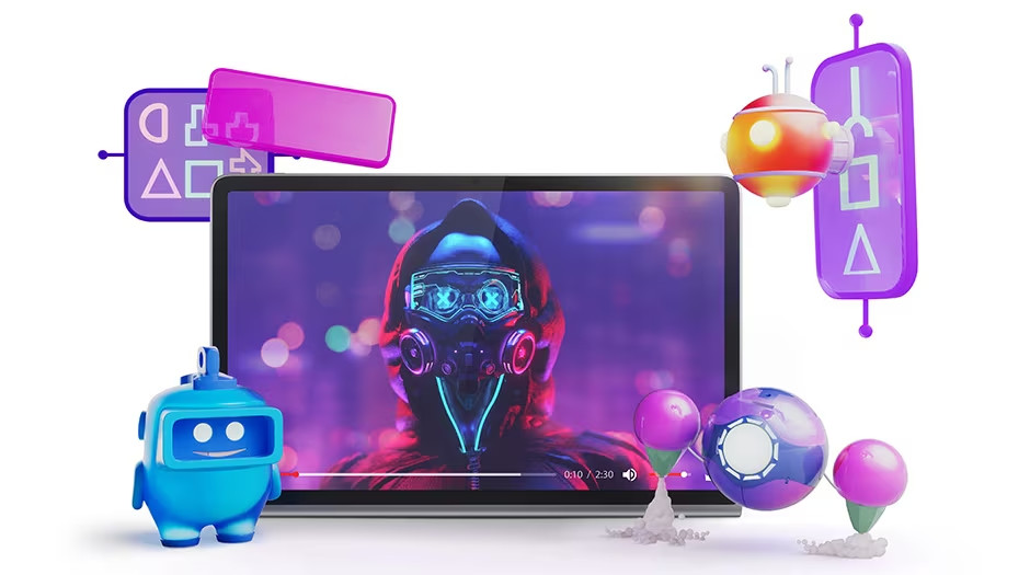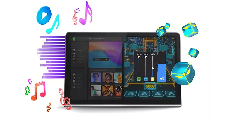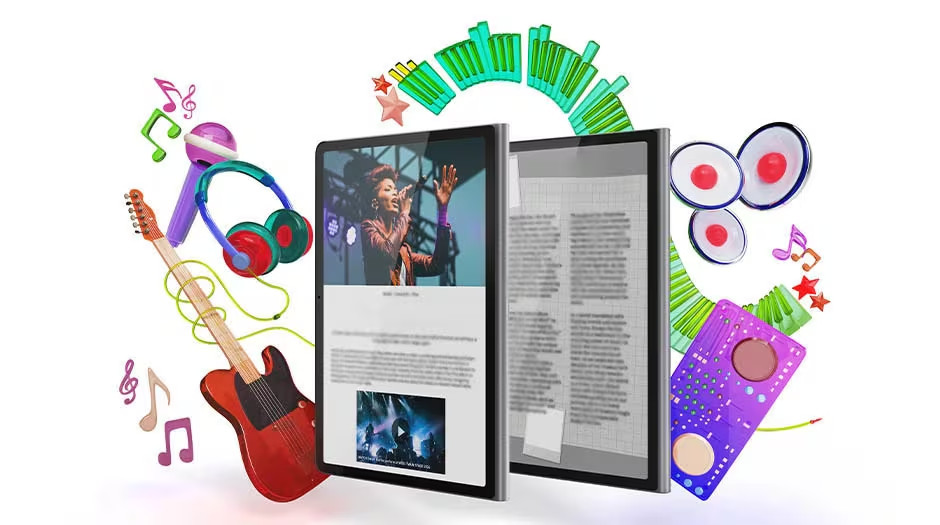 Lenovo Tab Plus vám vyrazí dech! Ponořte se do ostrých výšek a dunivých basů díky osmi Hi-Fi reproduktorům JBL® s Dolby Atmos®, které spojuje úžasný 11,5" displej s rozlišením 2K. Jeho 175° stojan a režim reproduktoru Bluetooth® nově definují osobní zábavu a nabízejí dokonalou kombinaci vizuálního a zvukového zázraku.