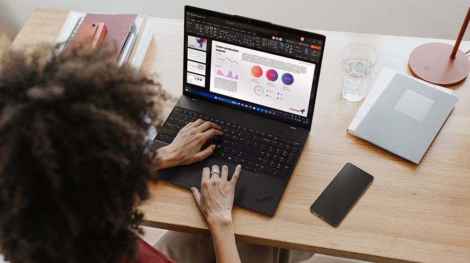 Zůstaňte produktivní po celý den, protože notebook ThinkPad L16 Gen 2 se přizpůsobuje vašim pracovním vzorcům a upravuje využití baterie – zatímco zadní větrací otvory udržují systém chladnější a ještě lepší výkon.