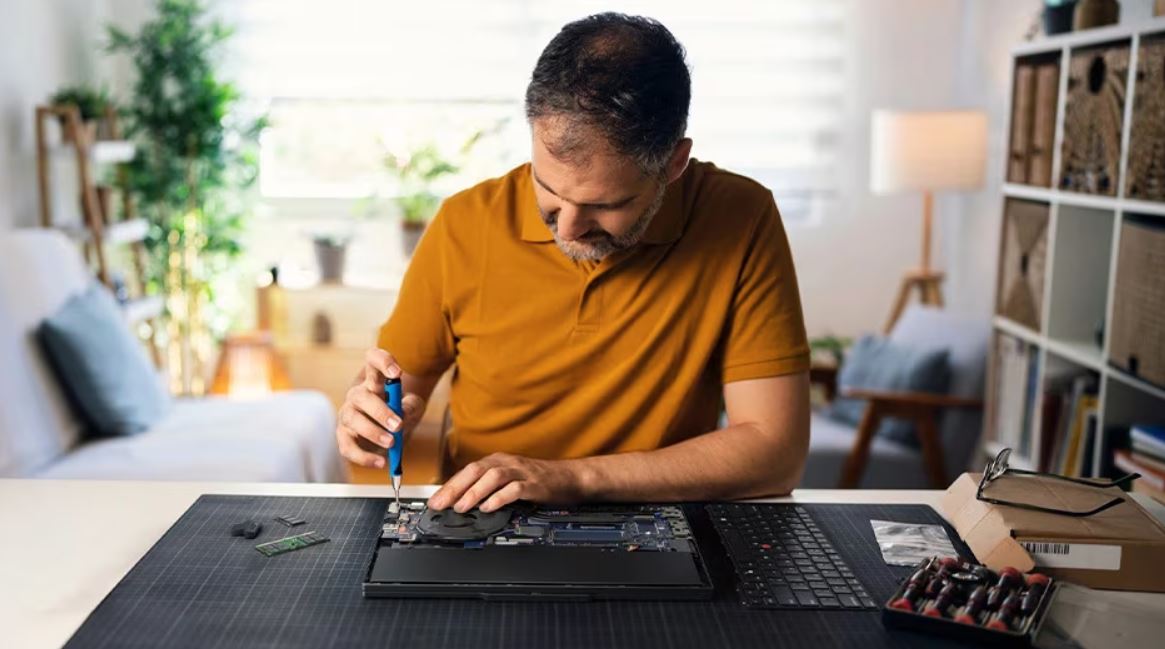 Notebook ThinkPad T14 Gen 6 umožňuje snadné opravy a prodloužený životní cyklus díky jednotkám vyměnitelným zákazníkem (CRU) – nyní včetně 57Wh baterie. Jeho možnosti pro vlastní opravy zajišťují snadné upgrady a výměnu komponent.