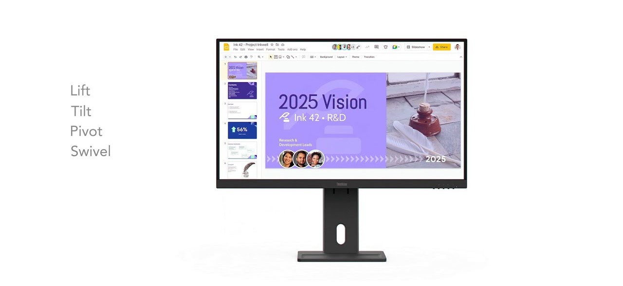 Udržujte pohodlnou polohu při sezení díky plně nastavitelnému stojanu LTPS, který je navržen tak, aby bylo možné monitor zvedat, naklánět, otáčet a natáčet pro optimální ergonomické pohodlí, a zároveň udržovat váš stůl bez kabelového nepořádku díky vylepšenému systému vedení kabelů stojanu.