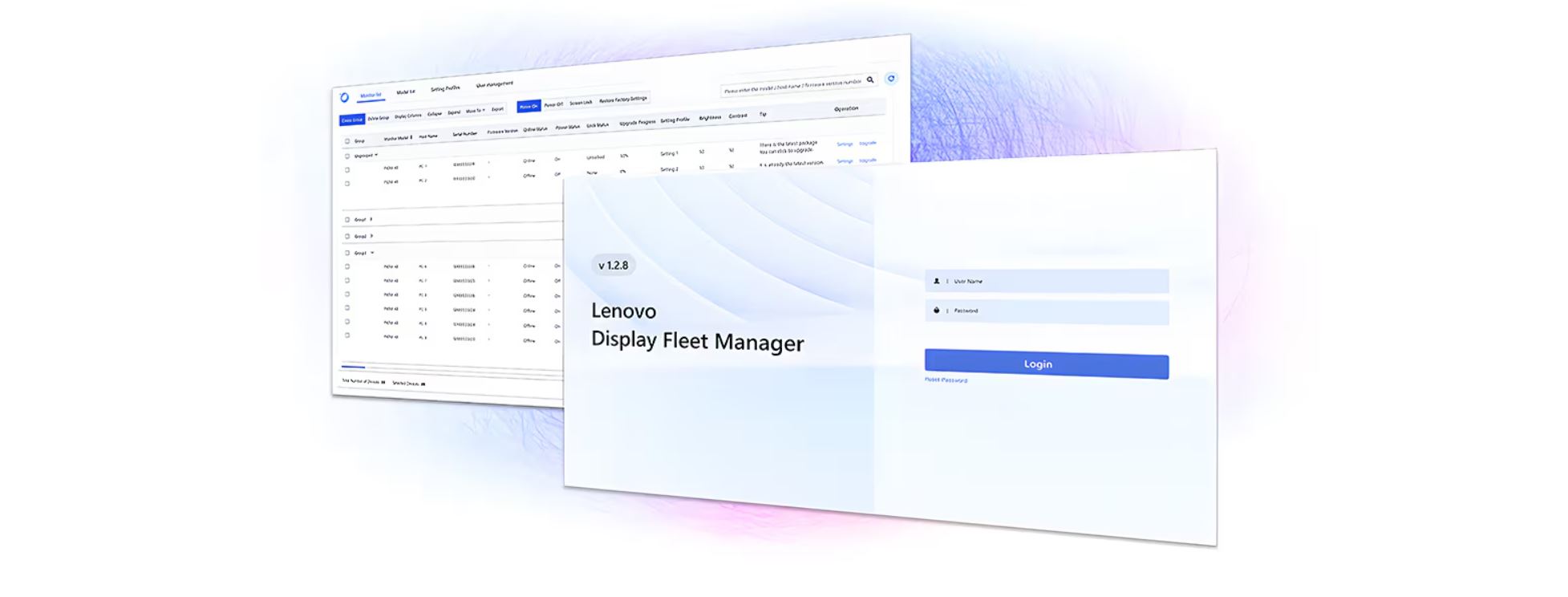 Software Lenovo Display Fleet Manager nabízí správcům IT lepší správu a kontrolu monitorů, pohodlné aktualizace firmwaru a rychlý přístup k nastavení. Lenovo Display Fleet Manager umožňuje snadné přizpůsobení a úpravy nastavení displeje.