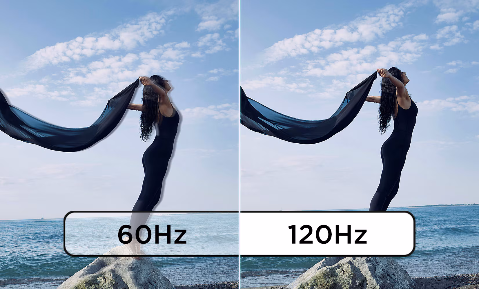 Vychutnejte si křišťálově čistý obraz bez zadrhávání na IPS panelu s rozlišením QHD a proměnnou obnovovací frekvencí 48–120 Hz.