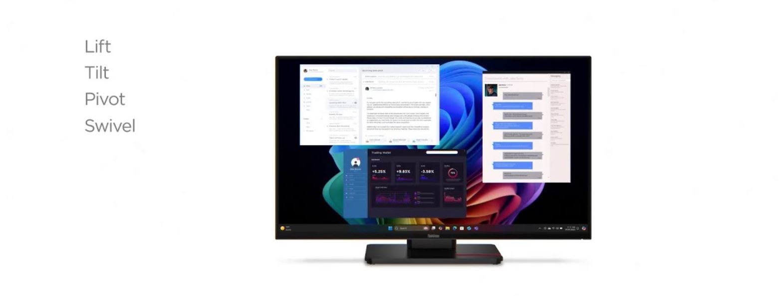 Dokovací monitory ThinkVision nabízejí USB hub a řešení s jedním kabelem, které současně přenáší napájení (až 100 W), data i obraz – ideální pro pohodlné digitální pracovní prostředí.