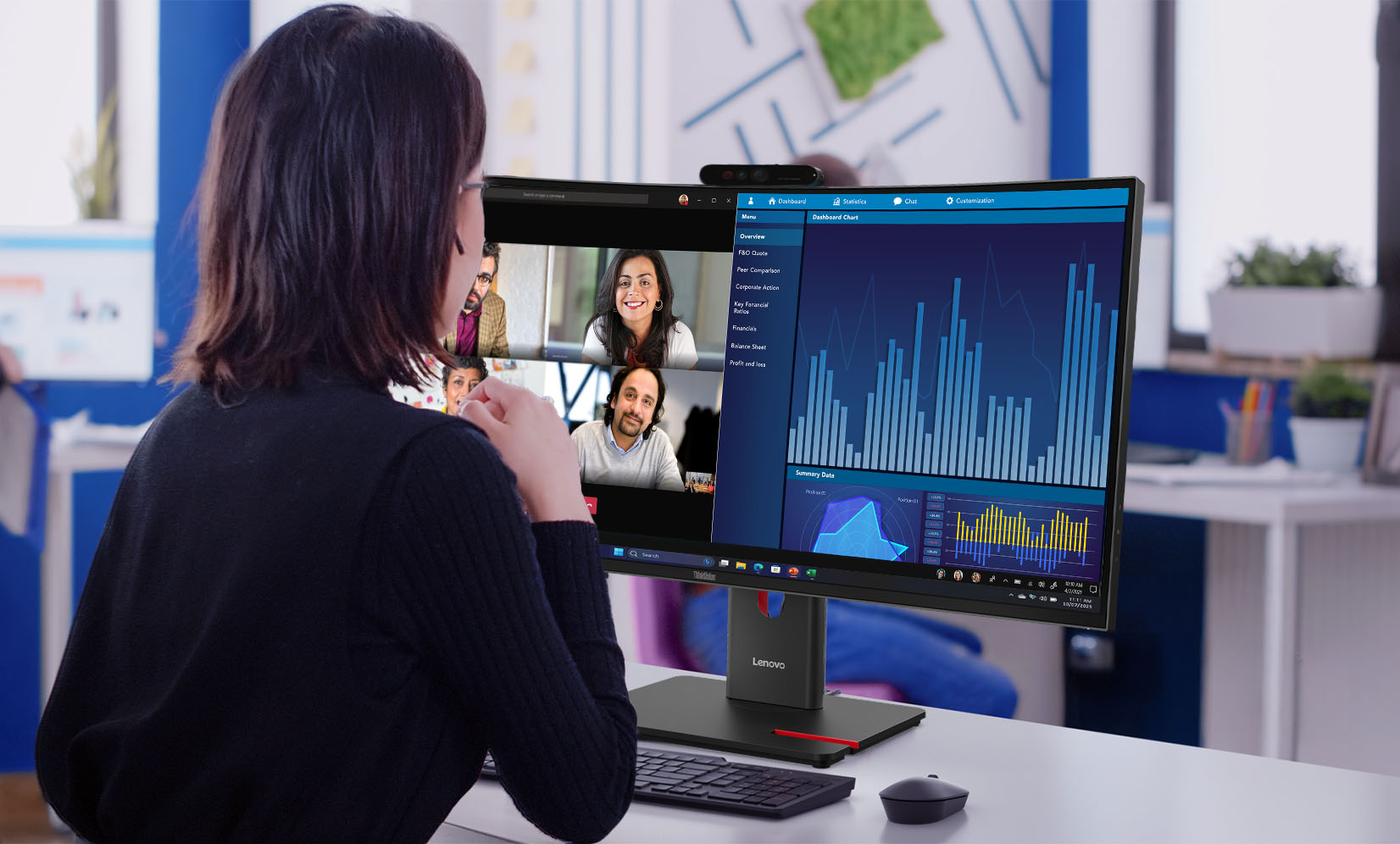Modulární monitory ThinkVision jsou kompatibilní s příslušenstvím jako webkamery, soundbary a dalšími zařízeními. Lze je ergonomicky nastavit podle potřeby.
