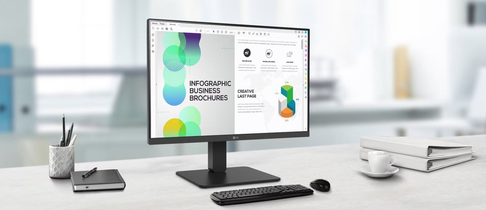 Tento všestranný monitor dokáže díky jasnému displeji IPS a téměř bezrámečkovému provedení na třech stranách pokrýt různé práce na mnoha místech, například v kancelářích, veřejných institucích a zákaznických službách.