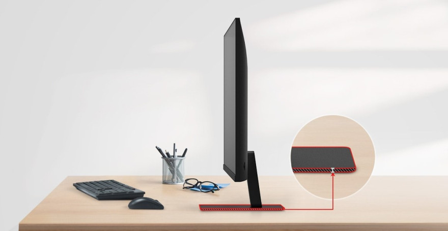 Mimořádně tenký stojan minimalizuje využití místa na stole a umožňuje efektivně využít pracovní prostor.
