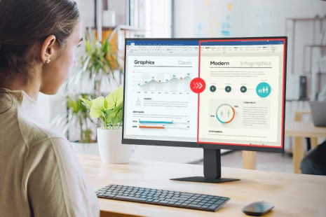 Náš monitor QHD s tenkým rámečkem na třech stranách a elegantním stojanem vám umožní vytvořit ideální pracovní prostor s pohodlným nastavením sklonu.