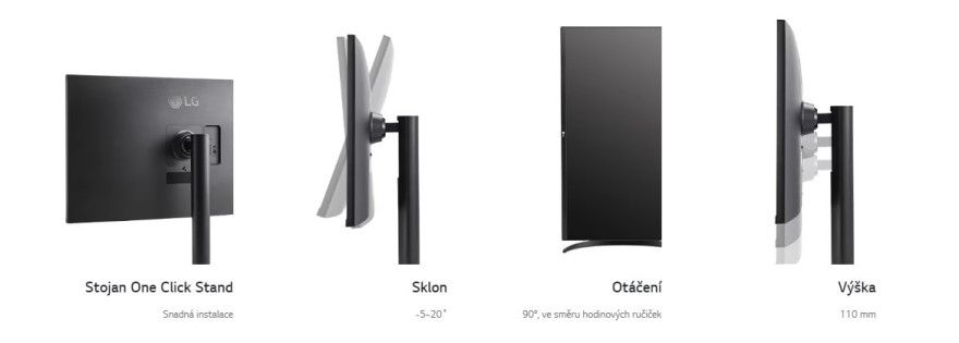 Vhodné polohy dosáhnete pomocí ergonomického stojanu: snadno nastavíte výšku, náklon a natočení pro ideální zážitek ze sledování.