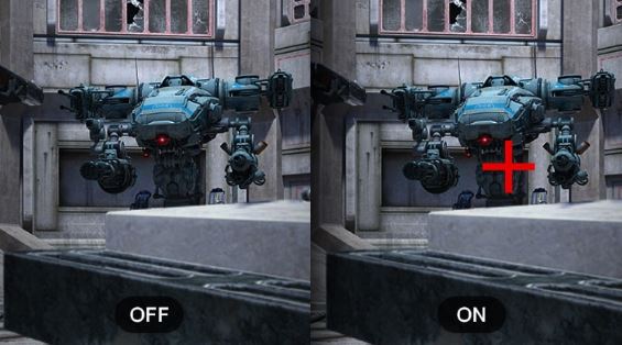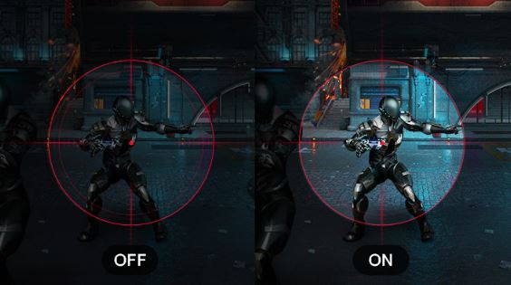 Cílový bod je zafixován na střed, aby se zvýšila přesnost střelby.