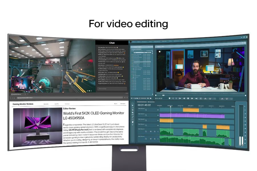 Maximalizujte produktivitu s rozsáhlým displejem LG UltraGear 5K2K UltraWide OLED. S rozlišením 125 PPI poskytuje ostré detaily, které jsou ideální pro tvůrce, editory, programátory a multitaskery. Poměr stran 21:9 nabízí plynulou obrazovku, která prakticky eliminuje přerušení rámečkem a udržuje celý váš pracovní postup v jasném výhledu.