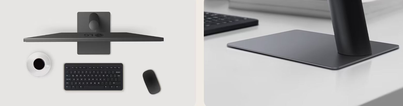 Elegantní stojan ve tvaru písmene L je navržen pro ergonomické pohodlí s nastavitelným náklonem. Je také kompatibilní s nástěnným držákem VESA 100 × 100, což umožňuje flexibilní instalaci a efektivní využití pracovního prostoru.