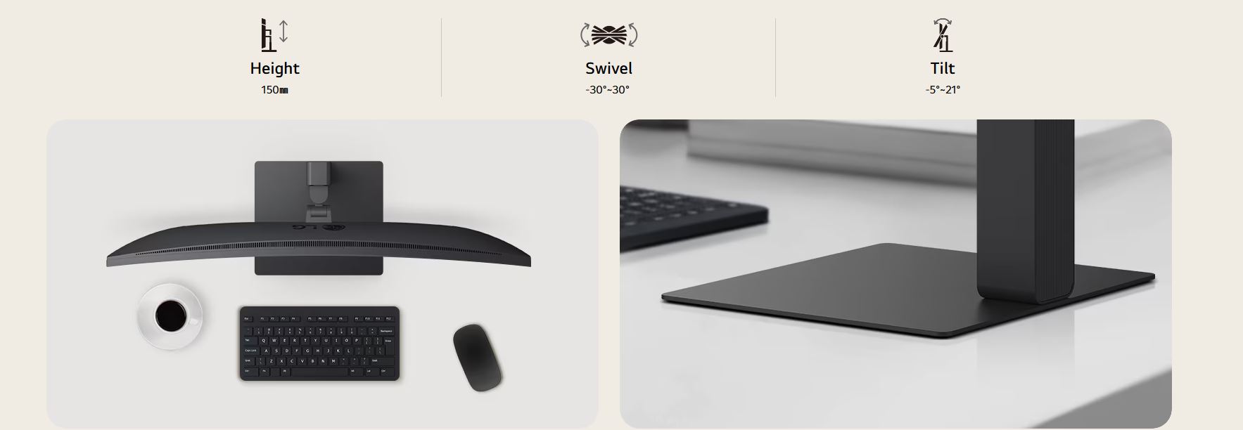 Elegantní stojan ve tvaru písmene L pomáhá udržovat váš prostor bez nepořádku a je ergonomicky navržen pro pohodlí, umožňuje snadné naklápění, otáčení a nastavení výšky tak, aby vyhovoval vašemu úhlu pohledu a držení těla. Díky podpoře montáže jedním kliknutím lze stojan nainstalovat rychle a snadno.