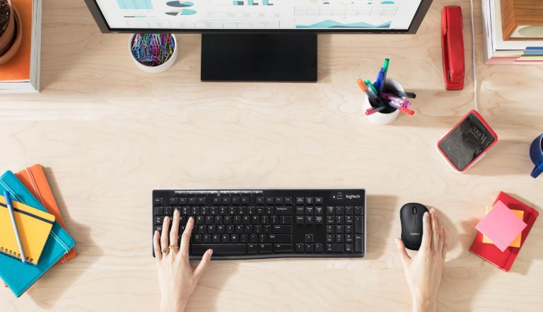 Snadné připojení, snadné použití. Zapomeňte na výpadky a zpoždění díky silnému a spolehlivému bezdrátovému připojení s dosahem až 10 m*. Model K270 je dodáván s USB přijímačem Logitech Unifying, který umožňuje spárovat až šest kompatibilních zařízení Logitech, takže k témuž přijímači můžete připojit i myš Logitech. Méně kabelů, méně starostí a snadný pracovní postup.