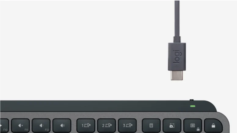 Podsvícené klávesy se rozsvítí, když se vaše ruce přiblíží ke klávesnici, a jejich jas se automaticky sníží nebo zvýší s ohledem na vaše prostředí. Ovládání na MX Keys S trvání a jas podsvícení v Logi Options+.