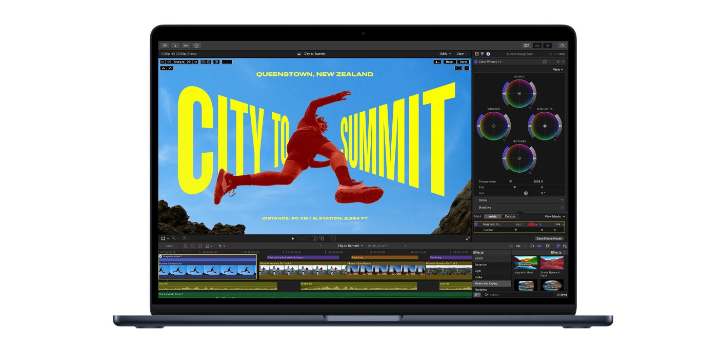 Multitasking. Megarychle. Čip M5 dává větší rychlost a plynulost všemu, co děláš, ať přeskakuješ mezi spoustou aplikací a záložek, střiháš 4K videa, nebo hraješ strhující hry jako Neverness to Everness. Všechno v naprosté tichosti, protože se obejde bez větráčku.