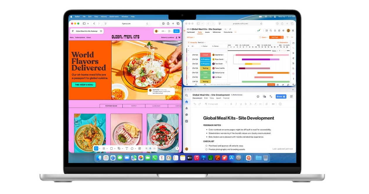 macOS je navržený tak, aby ti pomáhal zvládat pracovní úkoly, tvořit a být ve spojení – má výkonné aplikace a umožňuje hladký multitasking.