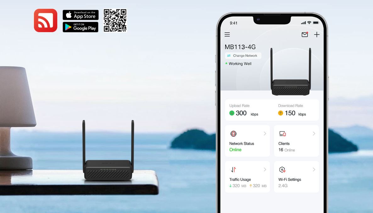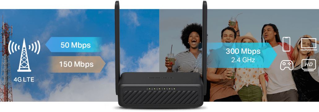 MB113-4G využívá technologii 4G LTE k dosažení bleskové rychlosti stahování až 150 Mb/s a odesílání až 50 Mb/s. Sdílí také Wi-Fi síť s maximální rychlostí 300 Mb/s v pásmu 2,4 GHz – ideální pro hraní her, streamování a další aktivity.