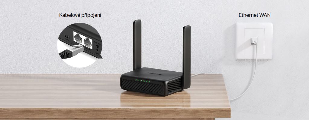 Díky plně funkčnímu portu WAN/LAN může MB113-4G fungovat jako router kompatibilní s kabelovými, optickými i DSL modemy, nebo poskytovat internet pro drátová zařízení.