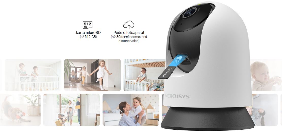Uložte všechny své důležité okamžiky na kartu microSD (až 512 GB) nebo si po bezplatné zkušební verzi předplaťte cloudovou službu MERCUSYS Camera Care.