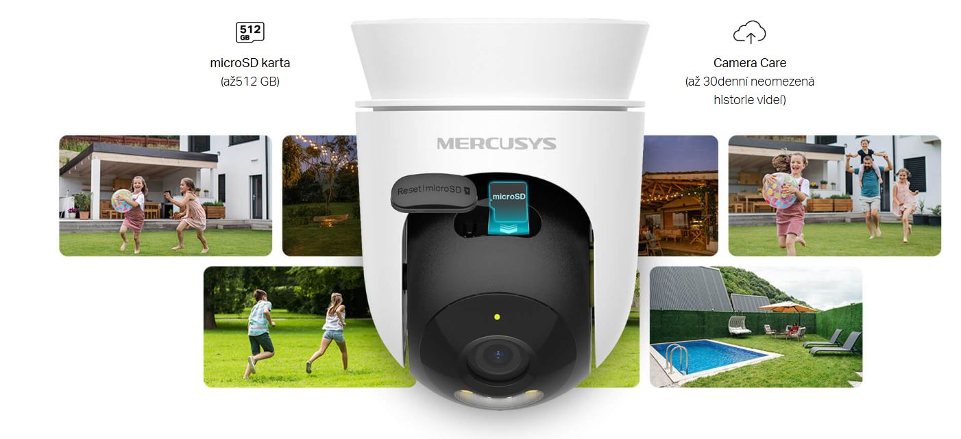 Uložte všechny důležité okamžiky na kartu microSD (až 512 GB) nebo si po bezplatné zkušební verzi předplaťte cloudovou službu MERCUSYS Camera Care.