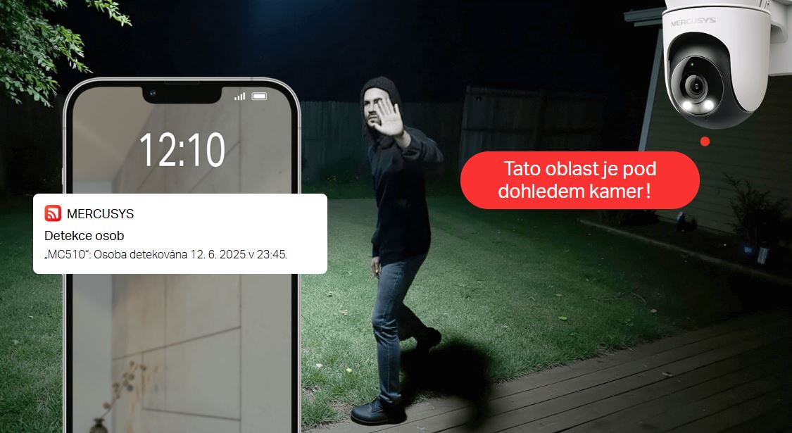 MC510 využívá inteligentní detekci pohybu a osob, aby ignoroval rušivé vlivy, jako jsou padající listí nebo měnící se světlo. Když je detekována skutečná hrozba, spustí blikající světlo a hlasitou sirénu, aby varoval a odradil vetřelce.