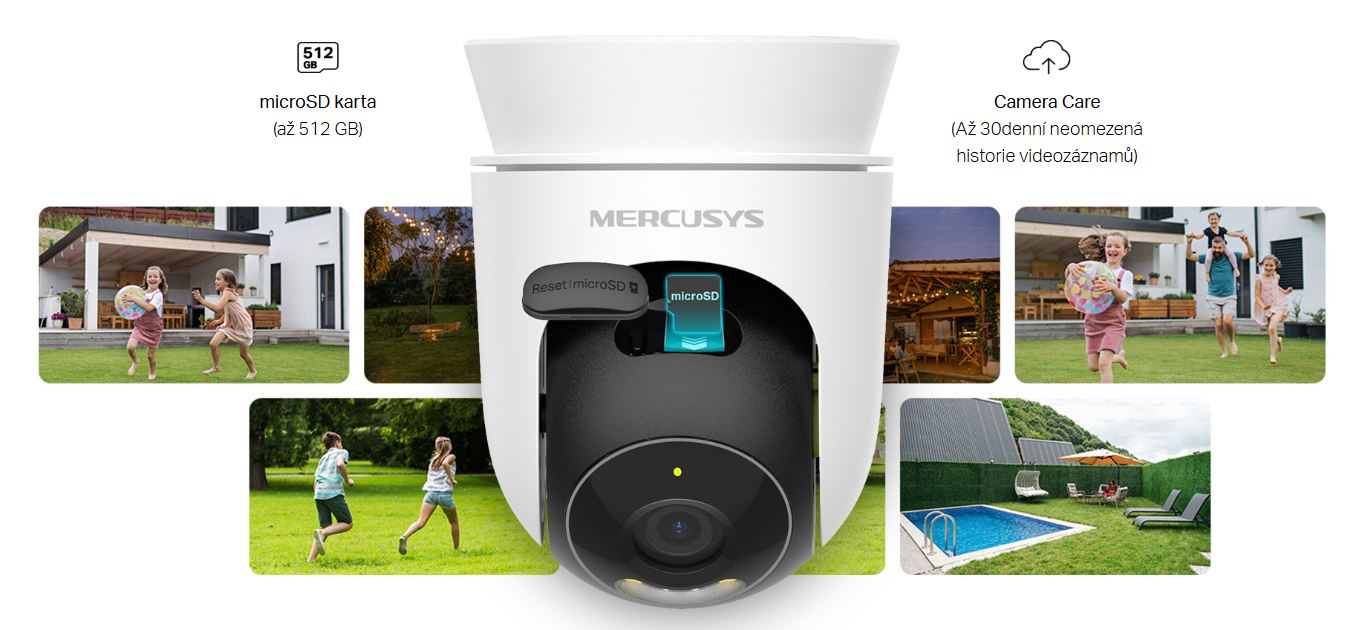 Uložte všechny důležité okamžiky na kartu microSD (až 512 GB) nebo si po bezplatné zkušební verzi předplaťte cloudovou službu MERCUSYS Camera Care.