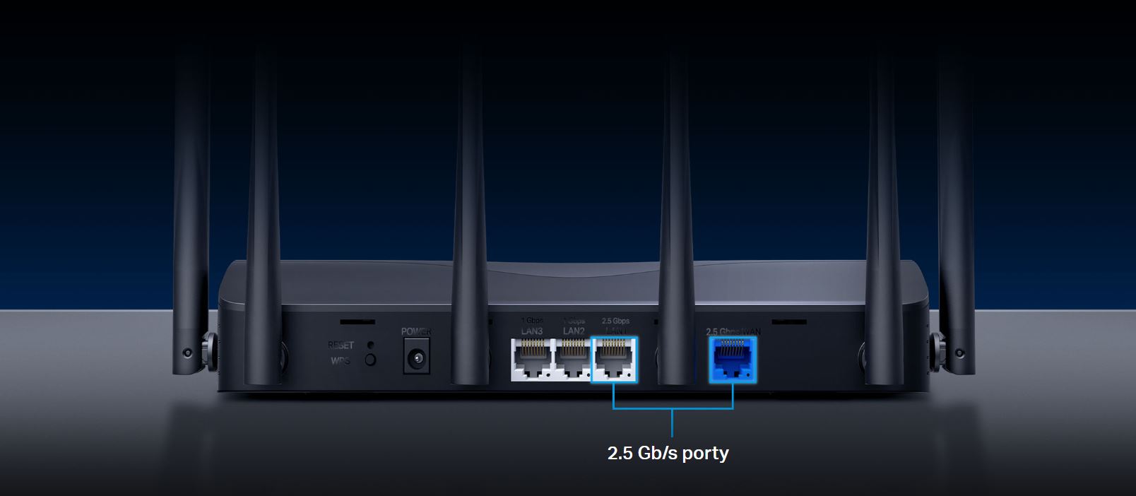 Je vybaven 1× portem WAN 2,5 Gb/s, 1× portem LAN 2,5 Gb/s a 2× porty LAN 1 Gb/s. MR37BE vám umožní plně využít rychlost širokopásmového připojení. Připojte k portům počítače, chytré televizory, herní konzole nebo zařízení NAS a získejte bleskurychlé kabelové připojení.