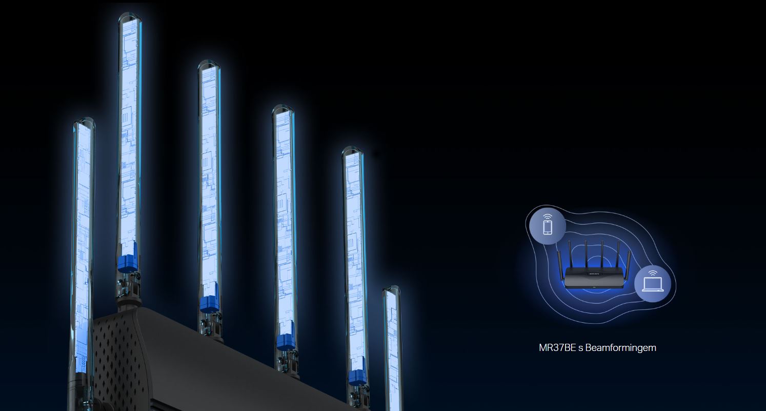 Šest všesměrových antén, vlastní optimalizace Wi-Fi a technologie Beamforming zajišťují širší pokrytí, větší kapacitu, silnější a spolehlivější připojení a méně rušení.