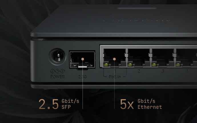 Pět gigabitových ethernetových portů a 2,5gigabitová SFP klec. Můžete se připojit přímo k optickému kabelu do domu nebo připojit vysokorychlostní NAS pro bleskově rychlý lokální přístup.
