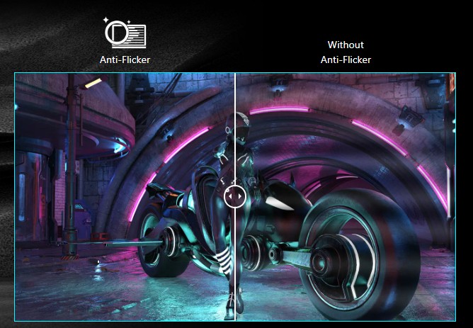 Běžné monitory mají obvykle frekvenci blikání přibližně 200krát za sekundu, což je pro lidské oko nepostřehnutelné, ale může to časem způsobit únavu. Technologie MSI Anti-Flicker poskytuje velmi pohodlný zážitek ze sledování díky snížení míry blikání.